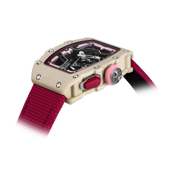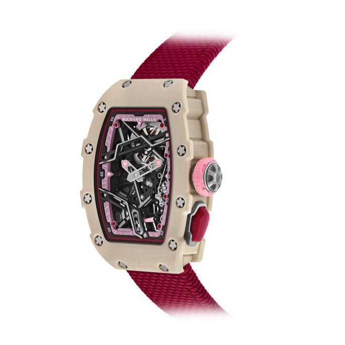 The RM07-04 White Nelly Korda is featuring a lightweight carbon TPT case in white. and an inner bezel and strap in bold red. this ultra-light design is the lightest of its kind. Wear the RM07-04 and make a statement with Richard Mille's signature style.