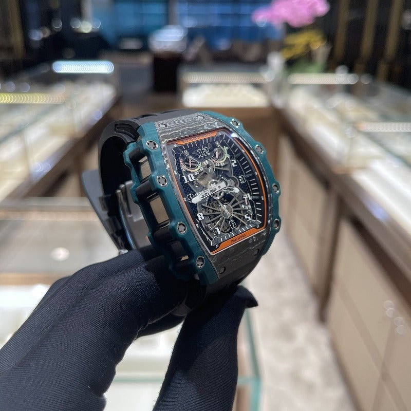 The RM21-02 Manual Winding Tourbillon Aerodyne is a limited edition watch. with only 50 pieces available. It features a unique honeycombed geometrical pattern of HAYNES® 214 with stiffness. With the newest built Calibre RM21-02. providing power reserve of up to 70 hours. This reliable timepiece offers sophisticated craftsmanship and reliable precision.