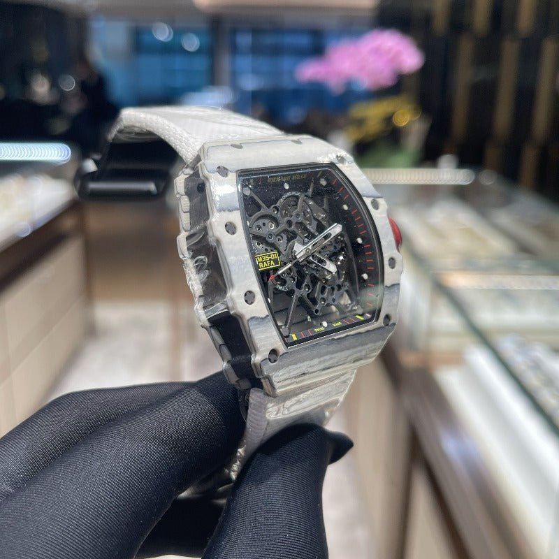 The Richard Mille RM35-01 is a limited edition watch with only 35 pieces. Its case is constructed from White Carbon TPT. making it both lightweight and resistant to corrosion and scratches. It is the last edition of RM35-01 with covered back case. The excellent attention to detail and superior finish of this watch make it an excellent choice for any serious collector.