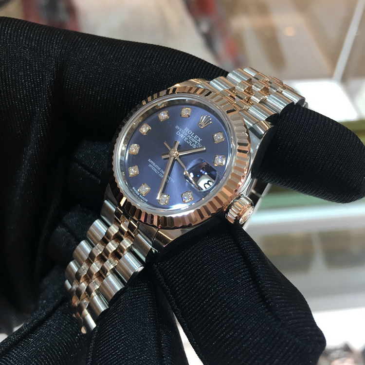 Rolex Datejust Swiss Replica watches are equipped with the new SuperLuminova Blue glow luminescent pigment that after sufficient activation by sunlight or artificial light will glow in the dark up to nine hours with uniform luminosity throughout.
