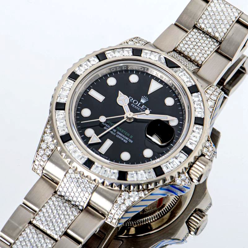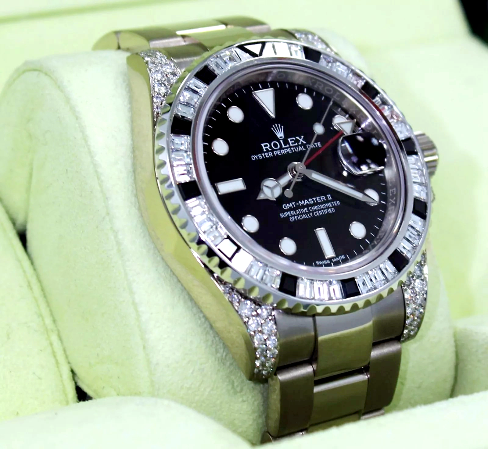 • Rolex GMT Master 2 Iced Lugs Sapphire Diamond Ruby Bezel