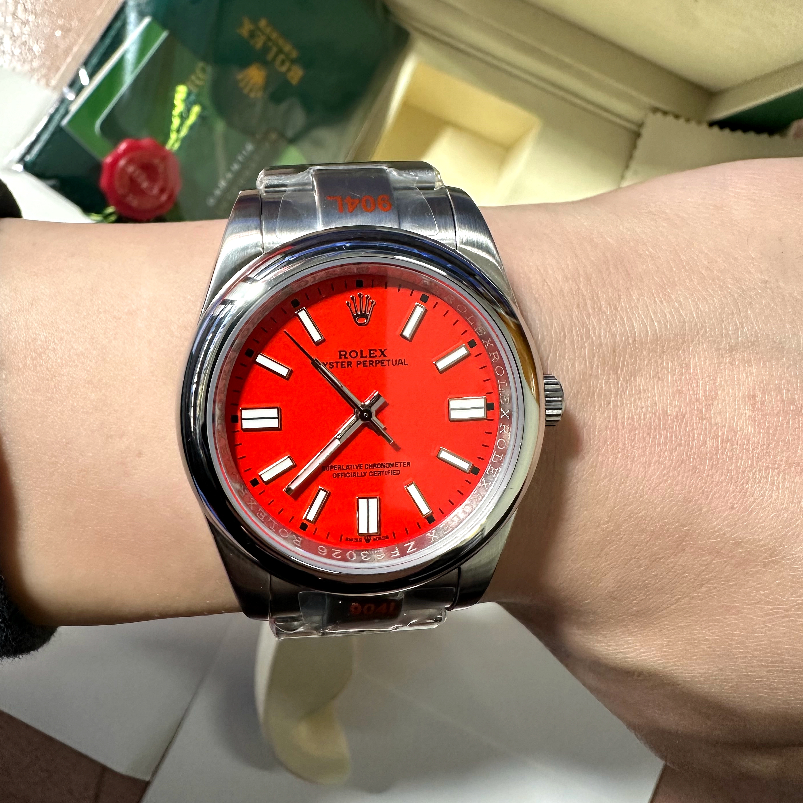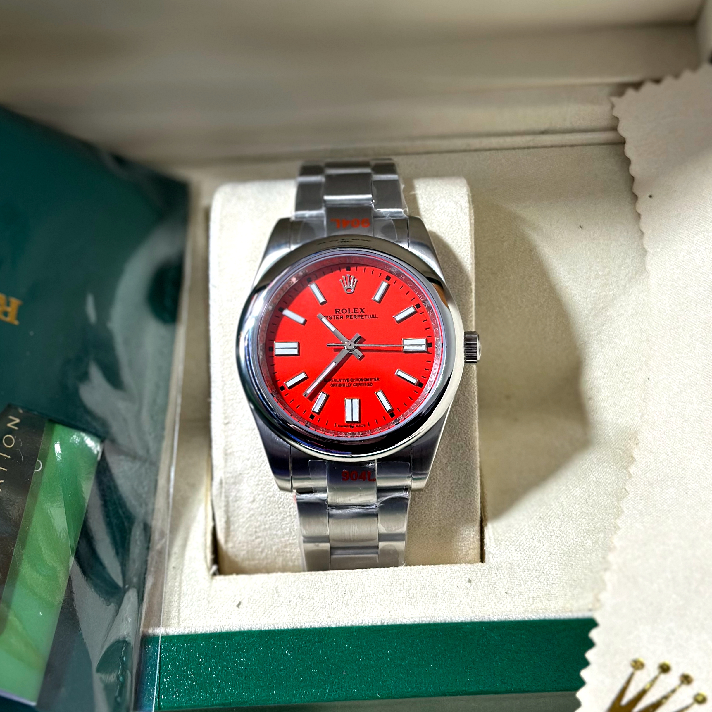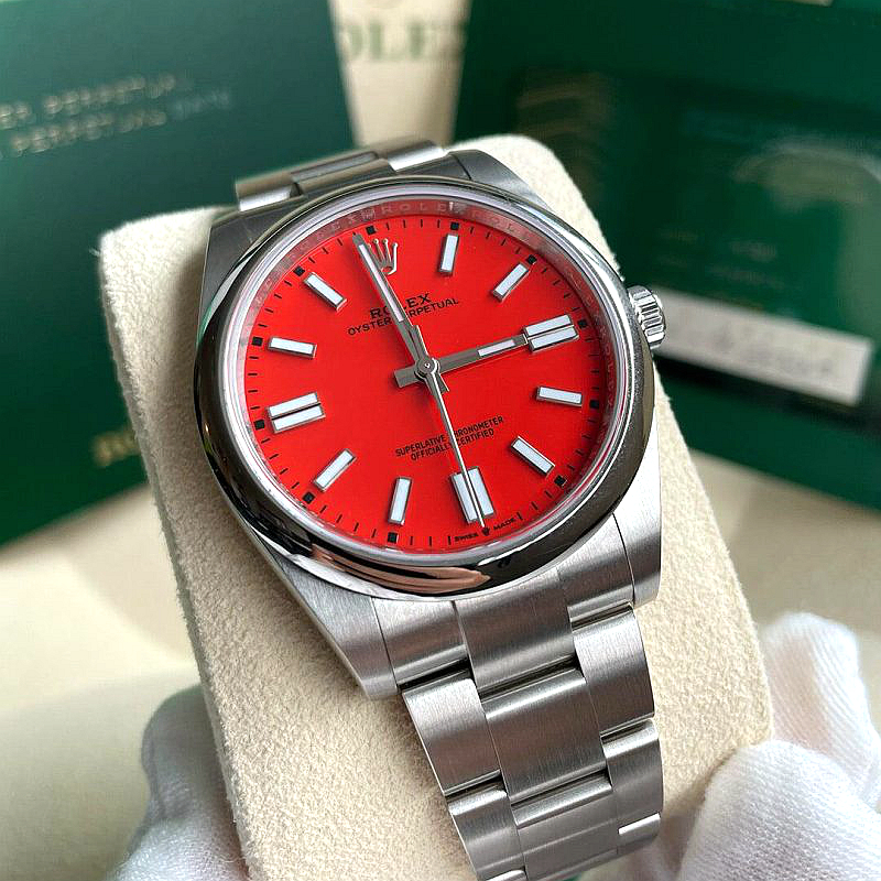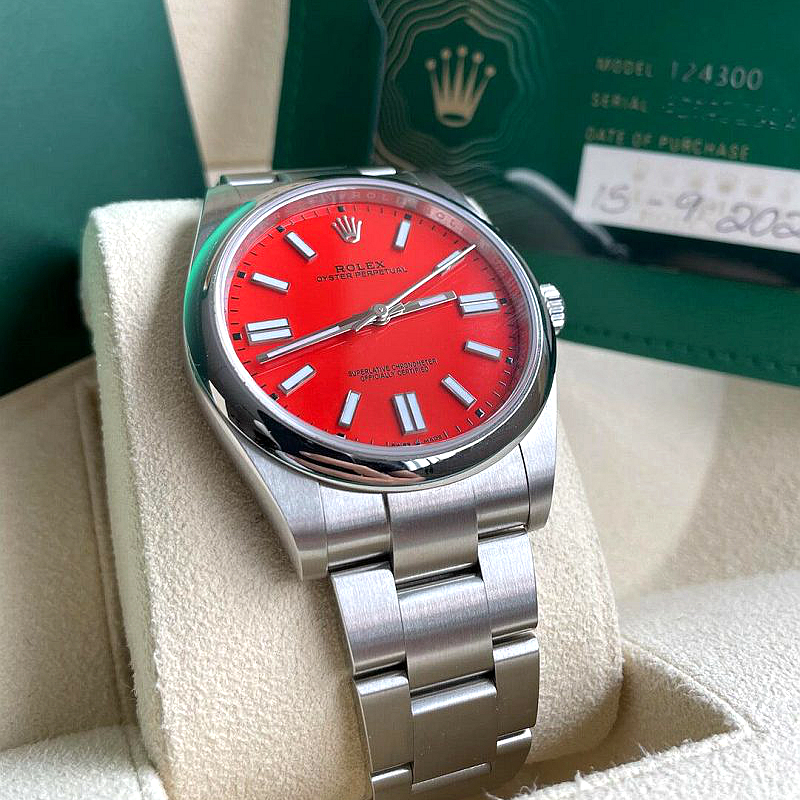 • Rolex Oyster Perpetual 41 124300 Red Dial Watch