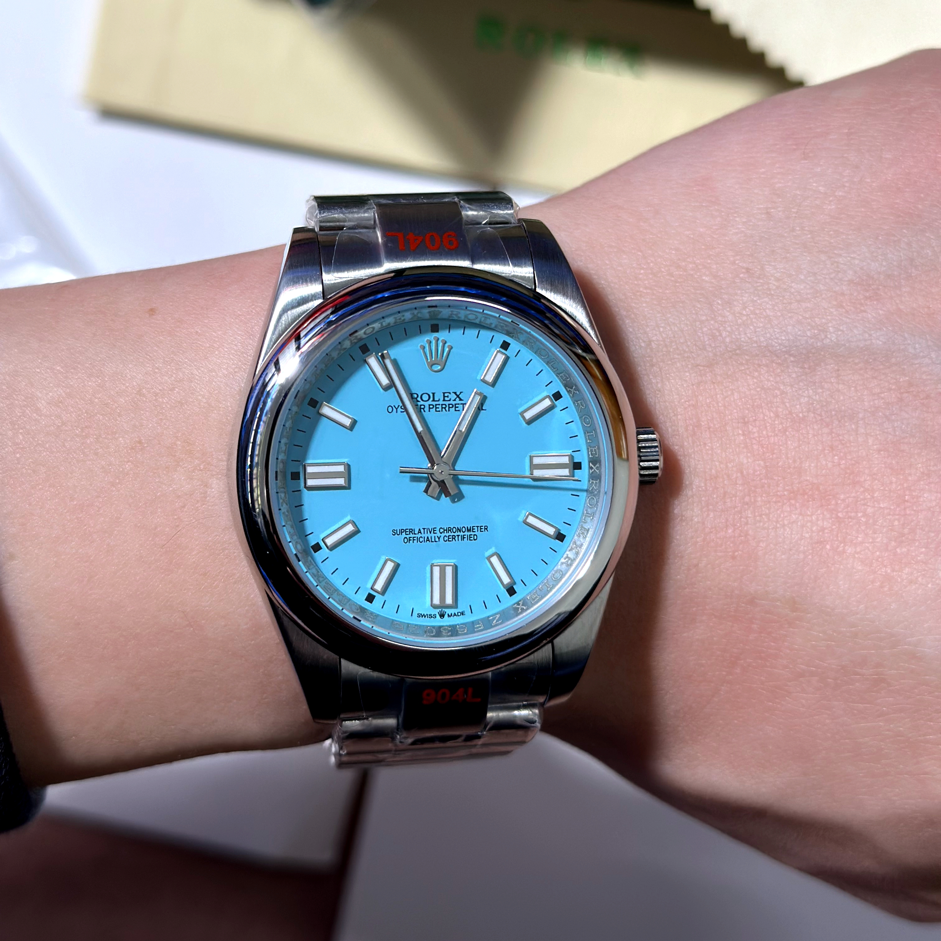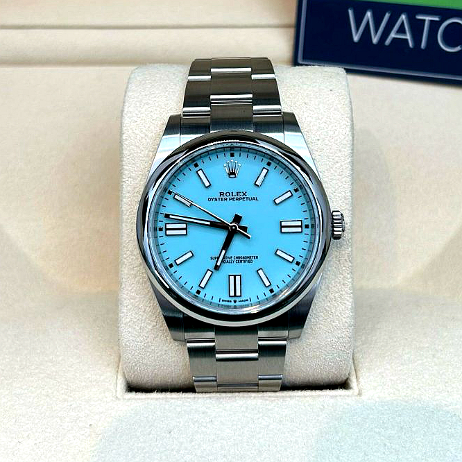 • Rolex Oyster Perpetual 41 124300 Tiffany Blue Dial Watch