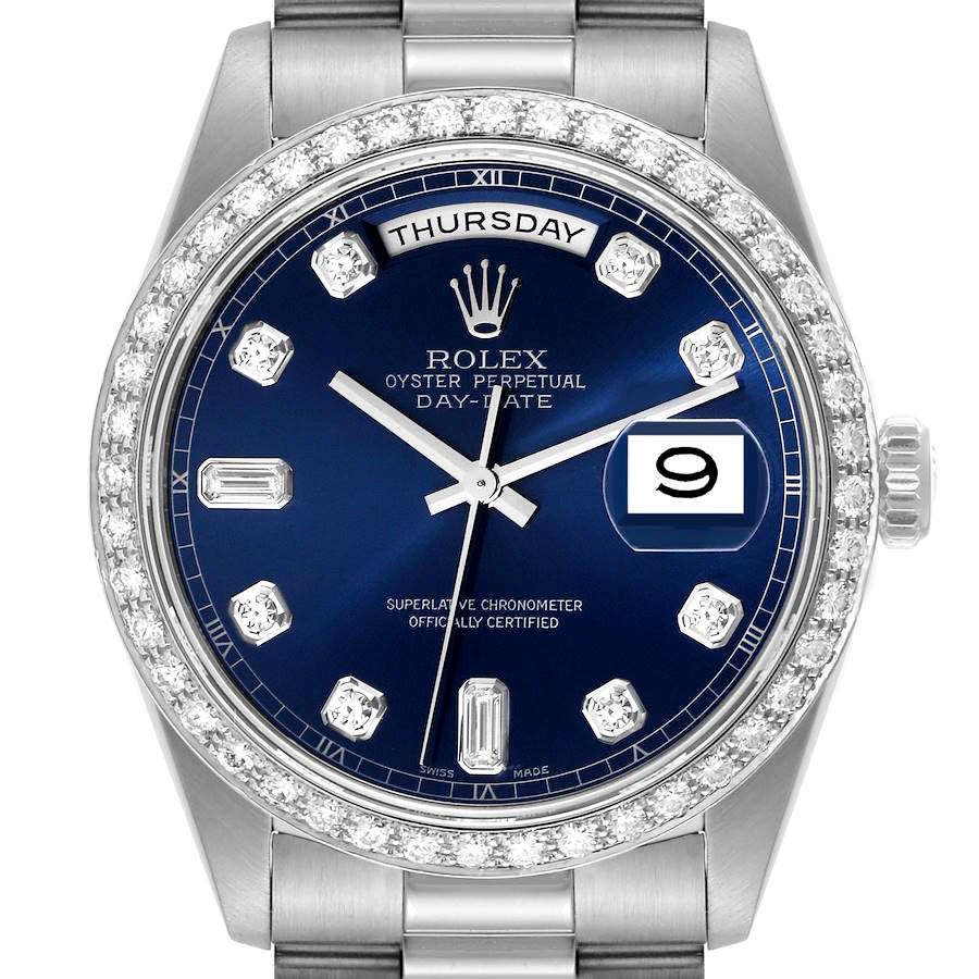 Rolex President Day Date Blue Diamond Dial Platinum Watch 18346