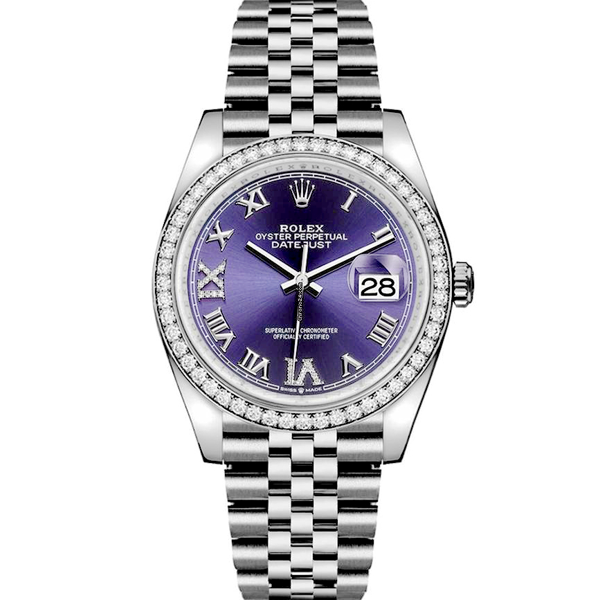 Rolex 126284RBR Datejust 36MM Aubergine Diamond Dial Jubilee Bracelet Watch