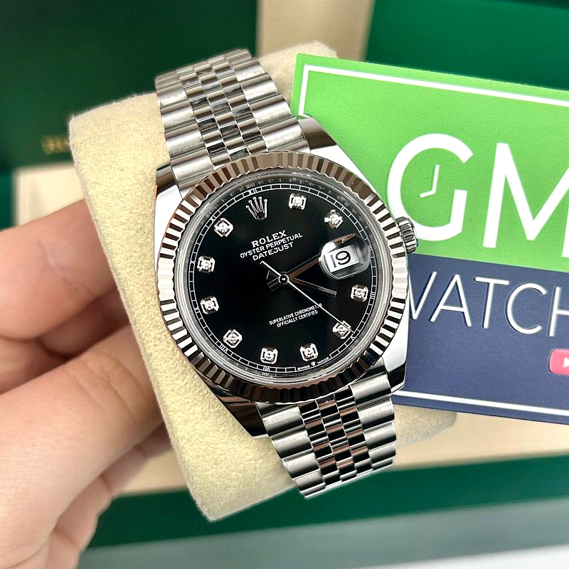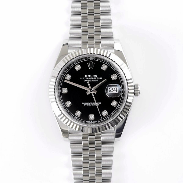 Rolex Datejust 41 126334 Fluted Bezel Jubilee Bracelet Black Diamond Dial