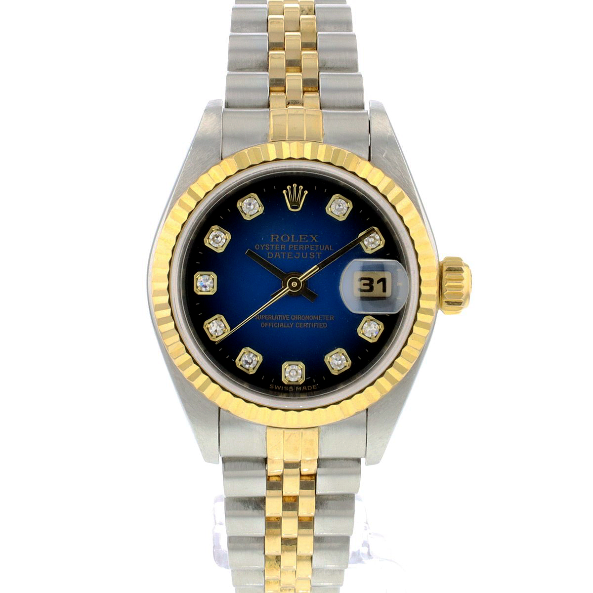 Rolex DateJust 28mm 279173 Stainless Steel 18k Yellow Gold Blue Diamond Dial Watch