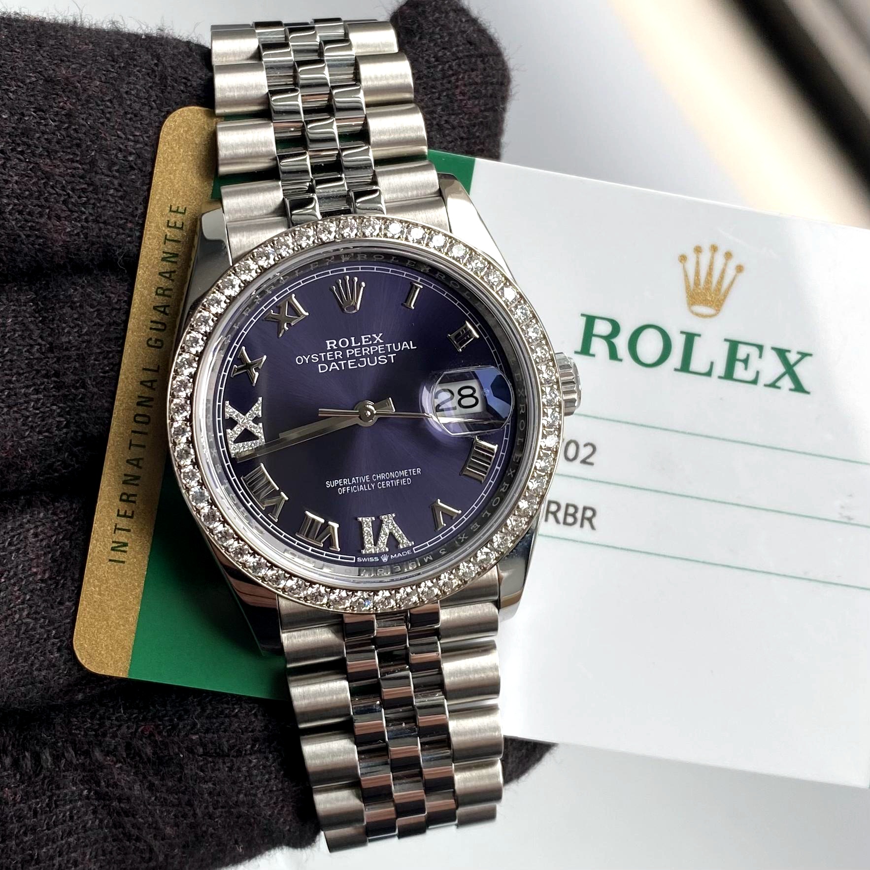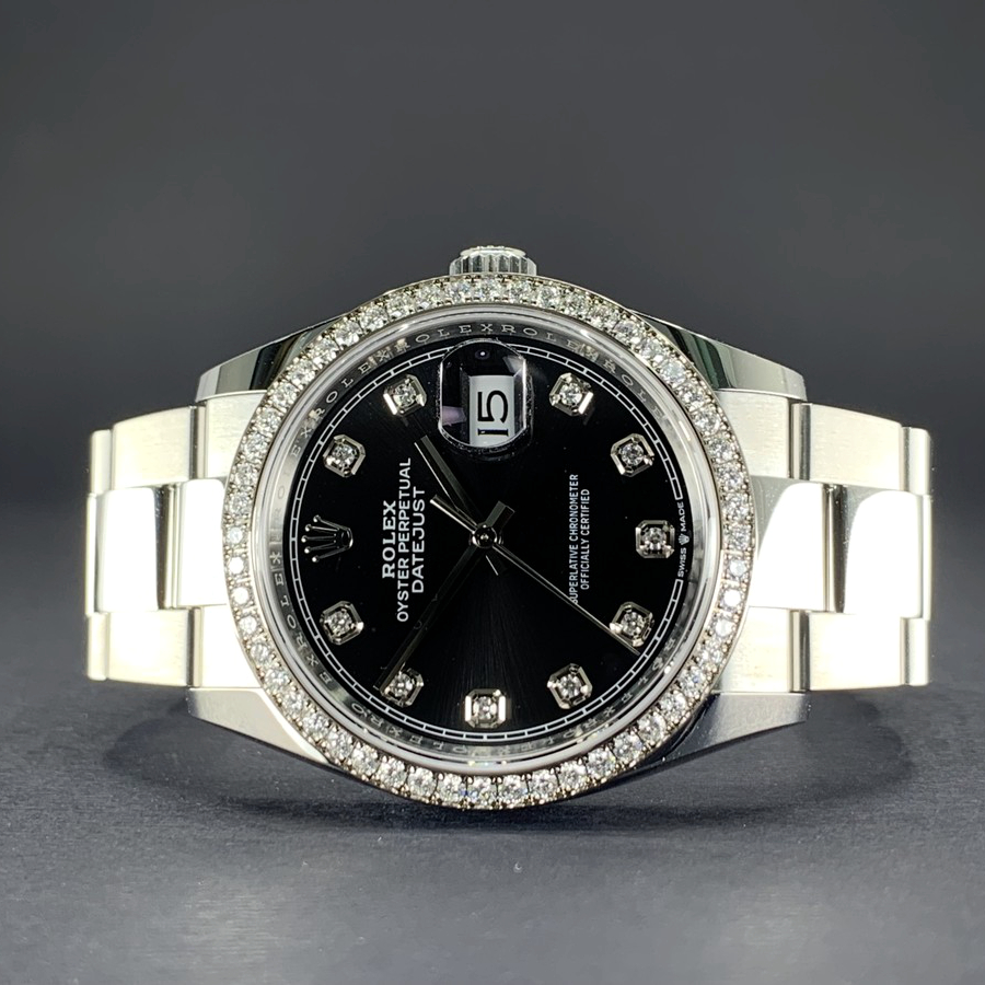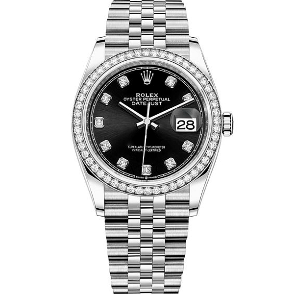Rolex Datejust 36 126284RBR Factory Diamond Bezel and Black Dial