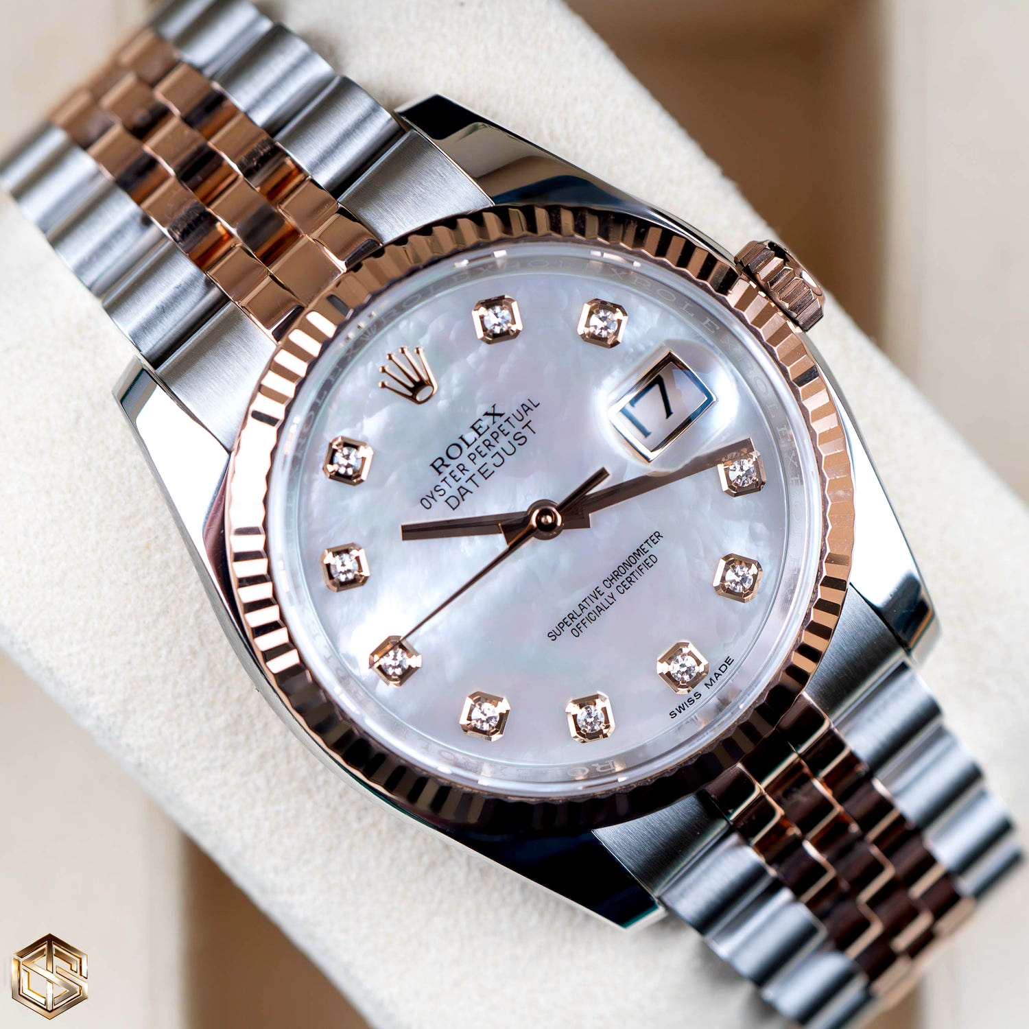 Rolex 116231 Datejust 36 Pearl Diamond Dial Everose Jubilee Bracelet Watch