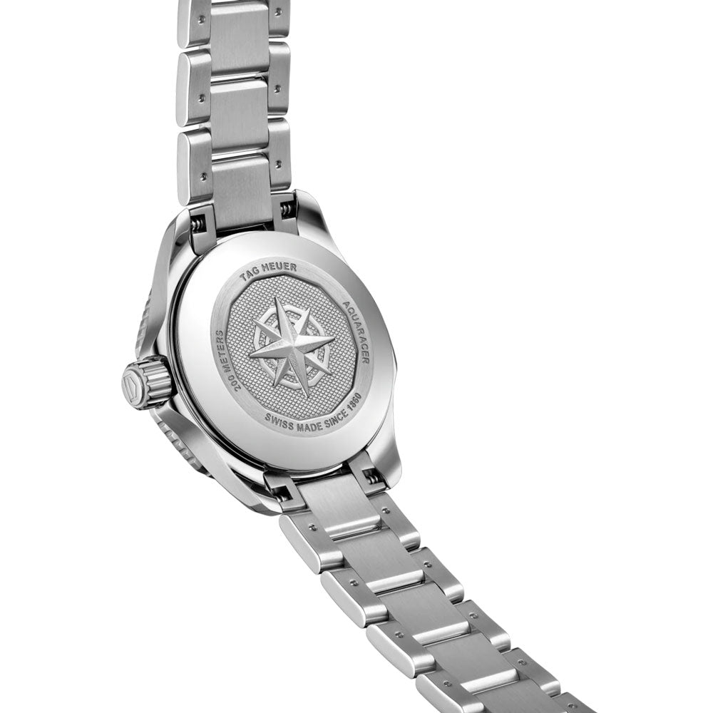 This TAG Heuer Aquaracer boasts a VS diamond-set bezel and dial for an opulent look. while the 30mm steel case and robust quartz movement ensure its reliable performance. This versatile tool watch is an ideal everyday companion.