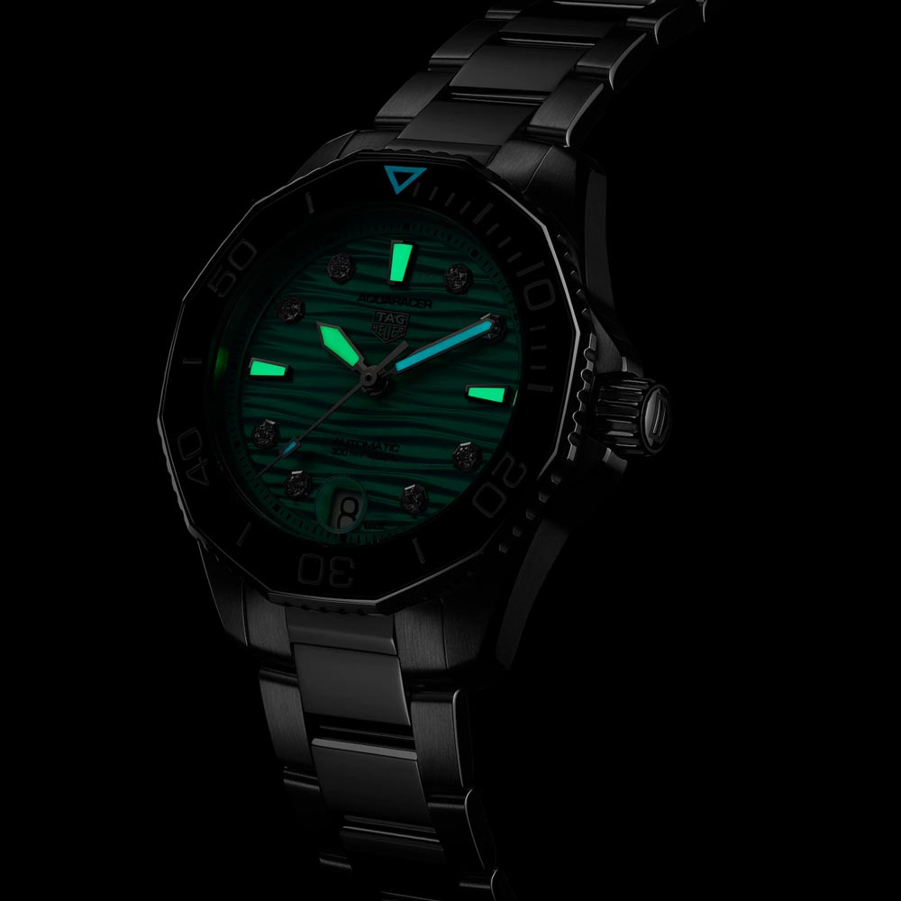 Envisioned to recall tranquil lagoons. the stunning cerulean hues of the dial create a perfect backdrop for this 300-metre water-resistant TAG Heuer Aquaracer Professional. Boasting remarkable durability. this diver is primed to test limits.