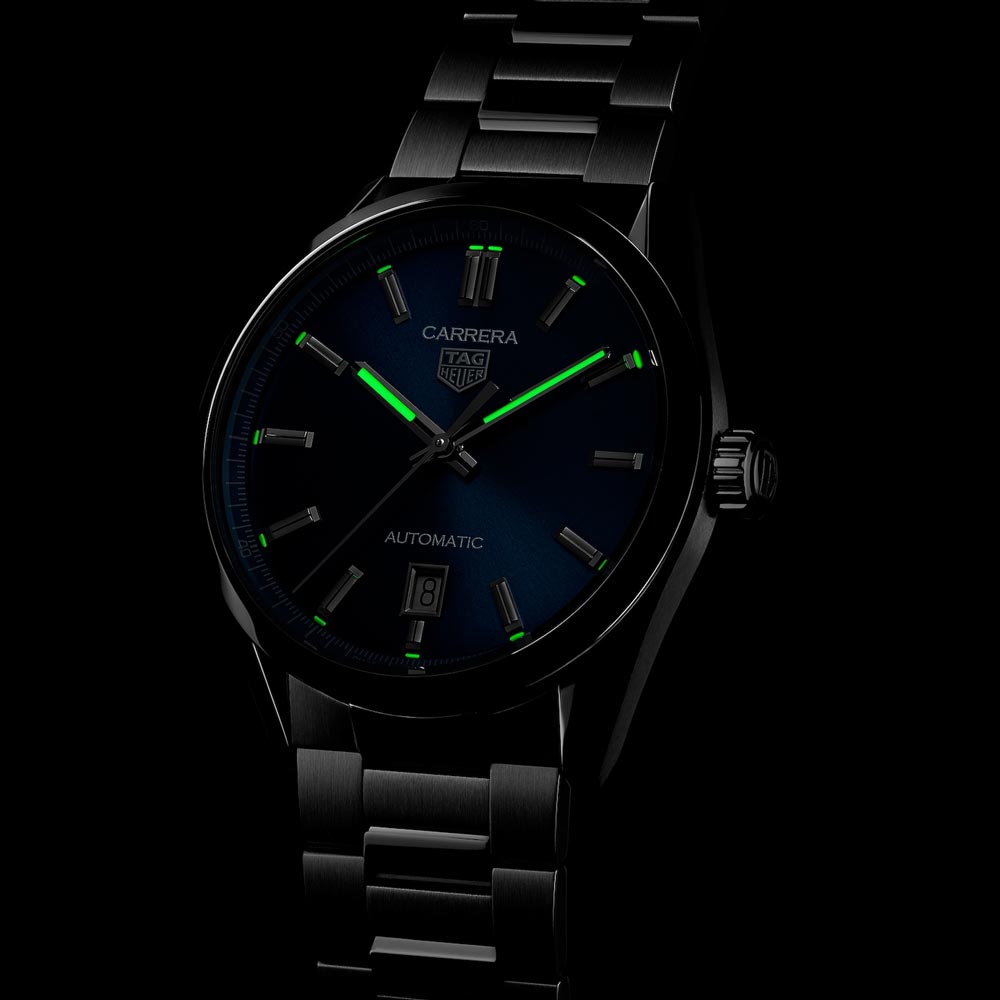 A sparkling blue dial. resplendent with urban chic and a bold proclamation. Graceful. robust. and mechanical. this contemporary timepiece is the most distinguished rendering of the TAG Heuer Carrera. prepared for every situation.