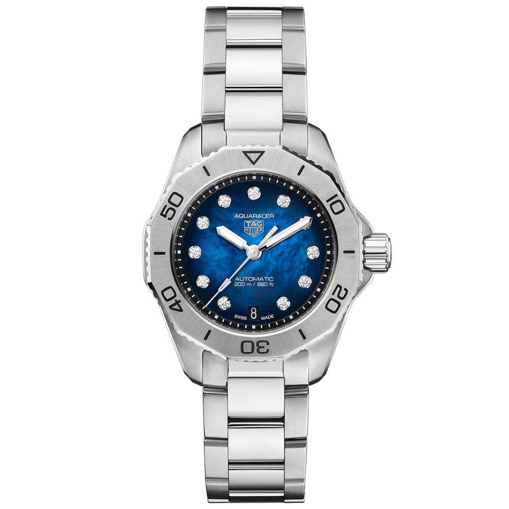 TAG Heuer Aquaracer Professional 300 36mm Blue Dial Diamond Automatic Watch WBP231B BA0618