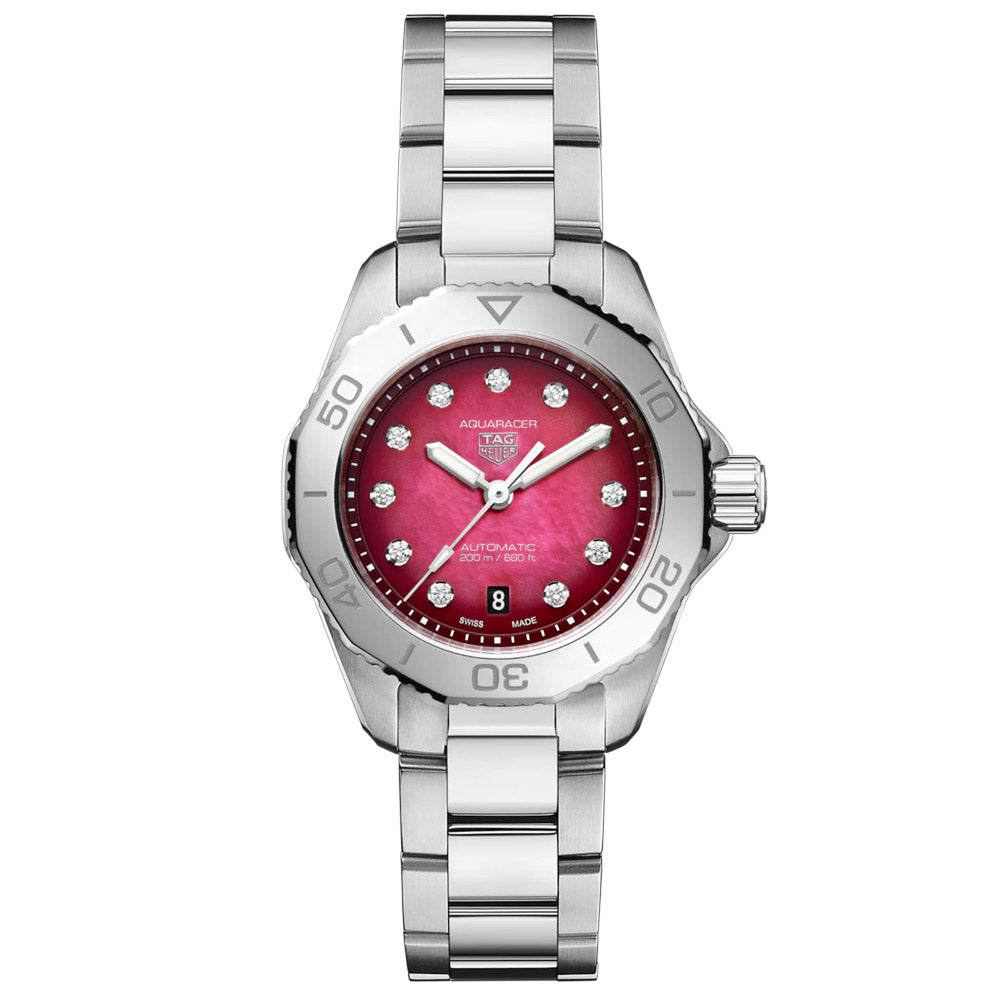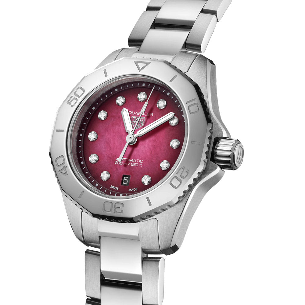 TAG Heuer Aquaracer Professional 200 Date 30mm Pink MOP Dial Diamond Automatic Ladies Watch WBP2414 BA0622