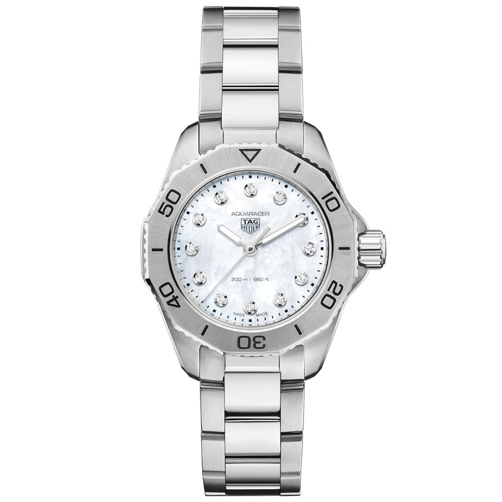 TAG Heuer Aquaracer Professional 200 Solargraph MOP Diamond Dot Dial 34mm Quartz Ladies Watch WBP1313 BA0005