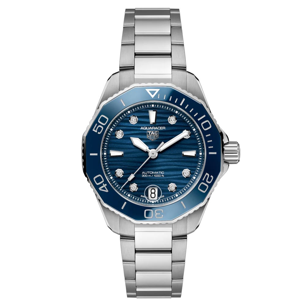 TAG Heuer Aquaracer Professional 300 36mm Blue Dial Diamond Automatic Ladies Watch WBP231G BA0618