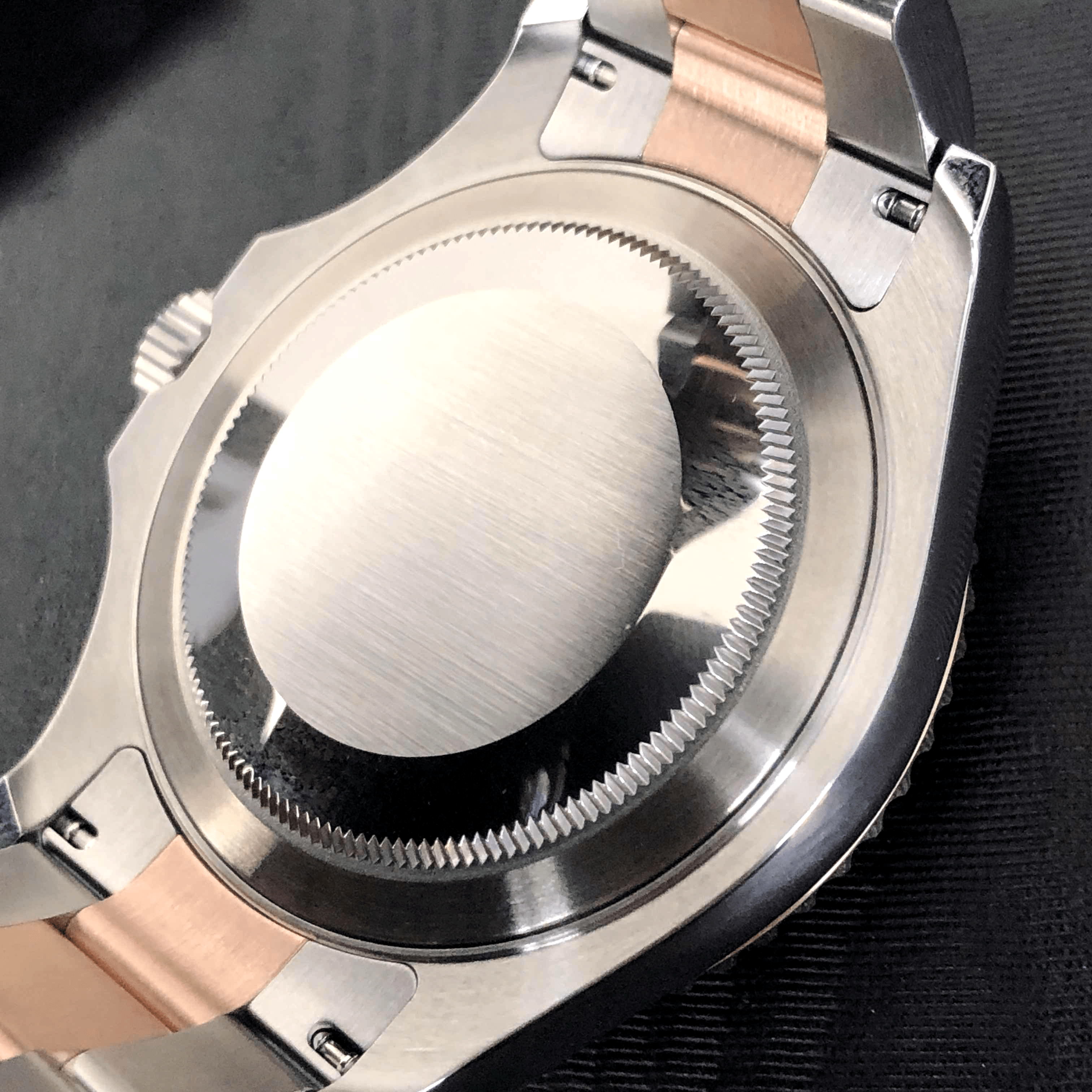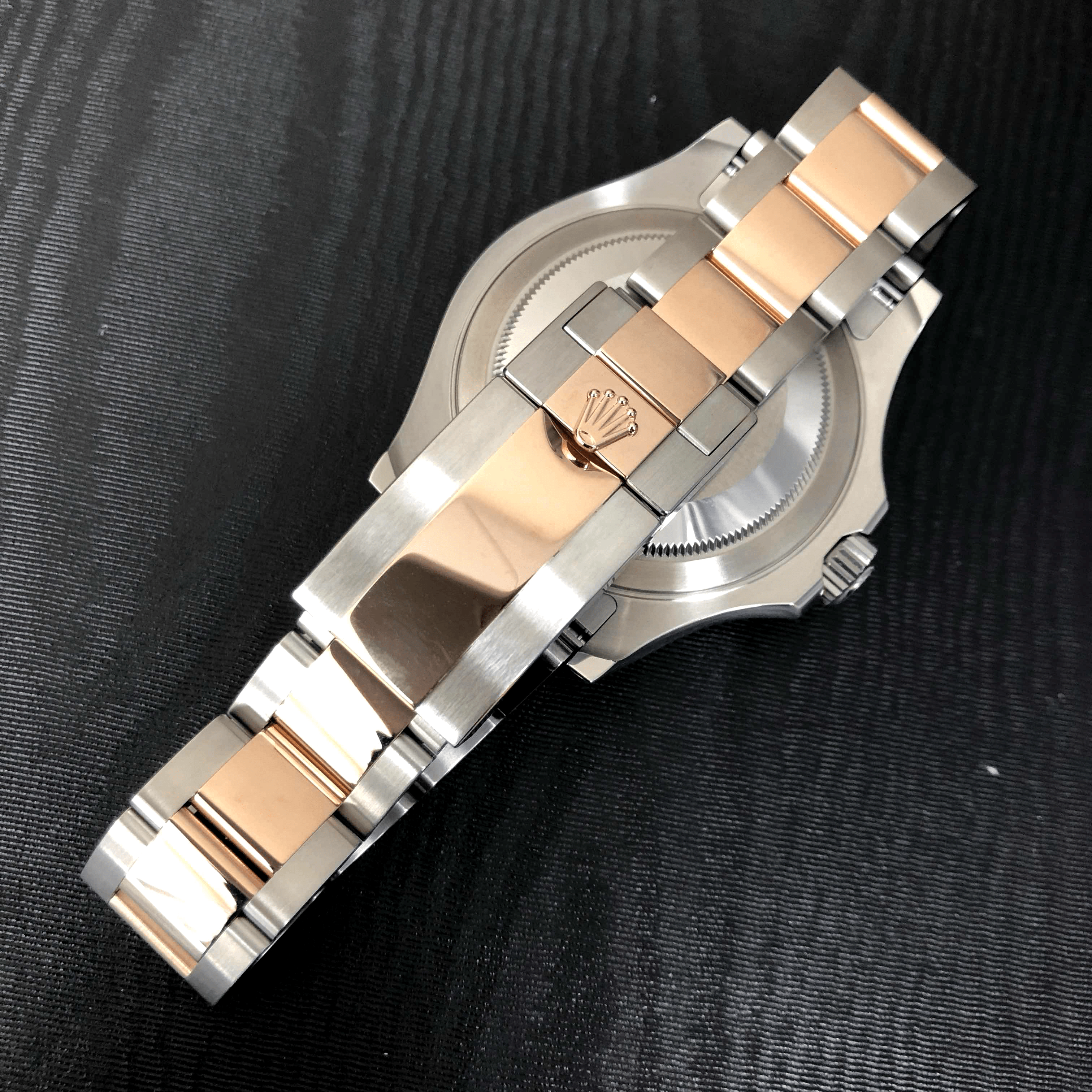 - Brushed with Polished Solid 18k Everose Gold Bezel